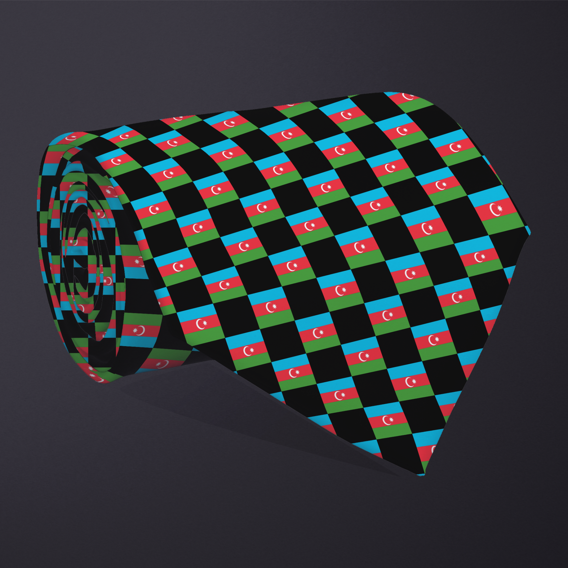 The design showcases a bold diagonal pattern of miniature Azerbaijan flags, artfully arranged to form an elegant geometric motif. The design showcases a bold diagonal pattern of miniature Azerbaijan flags, artfully arranged to form an elegant geometric motif. From afar, the print reads as modern and sophisticated—perfect for formal events or smart-casual wear. But up close, it reveals something more: a quiet tribute to Azerbaijan ’s rich heritage and enduring spirit.